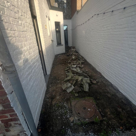 Vernieuwen van het terras en voorzien van waterafvoer te lauwe.